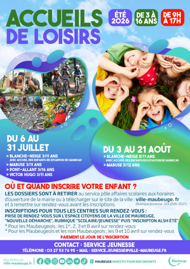 Contact : 03 27 53 76 95 – service.jeunesse@ville-maubeuge.fr