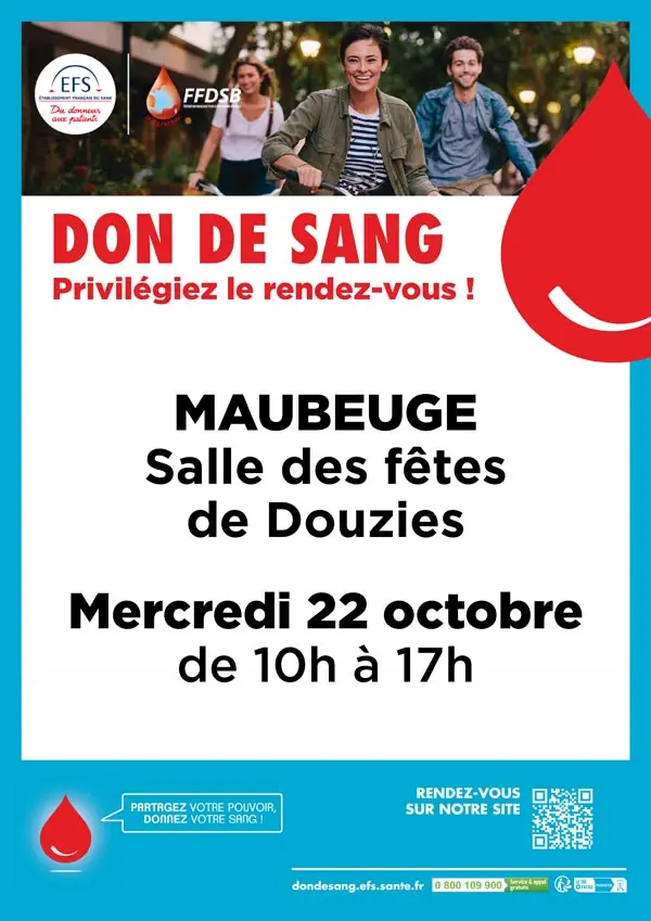 L’Association du don du sang organise un don du sang de 10h ร  17h ร  la salle des fรชtes de Douzies