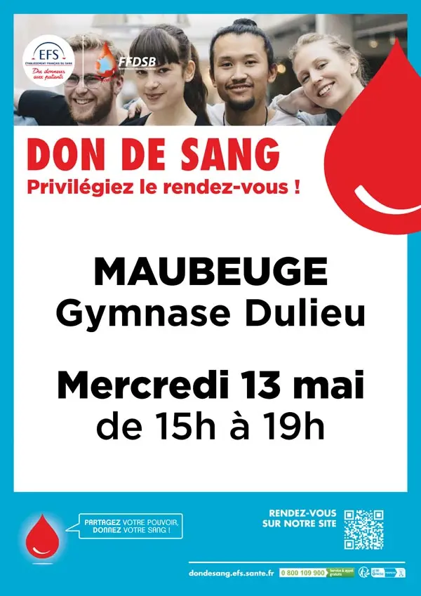 L’Association du Don du Sang organise un don du Sang de 15h à 19h au gymnase Dulieu