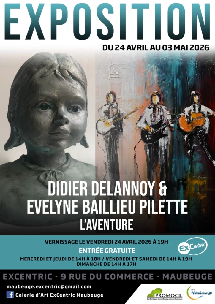 L’association ExCentric présente l’exposition de sculptures et peintures de Evelyne Baillieu Pilette et Didier Delannoy à la galerie ExCentric, 9 rue du Commerce