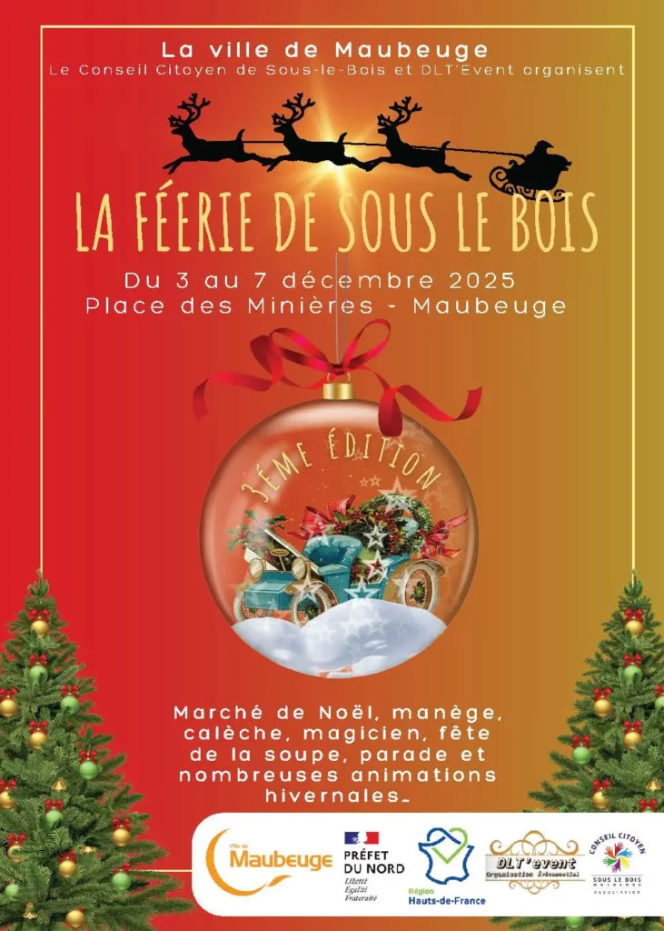 La ville de Maubeuge, le conseil citoyen de Sous-le-Bois et DLT Event organisent la féerie de Sous-le-Bois sur la place des Minières