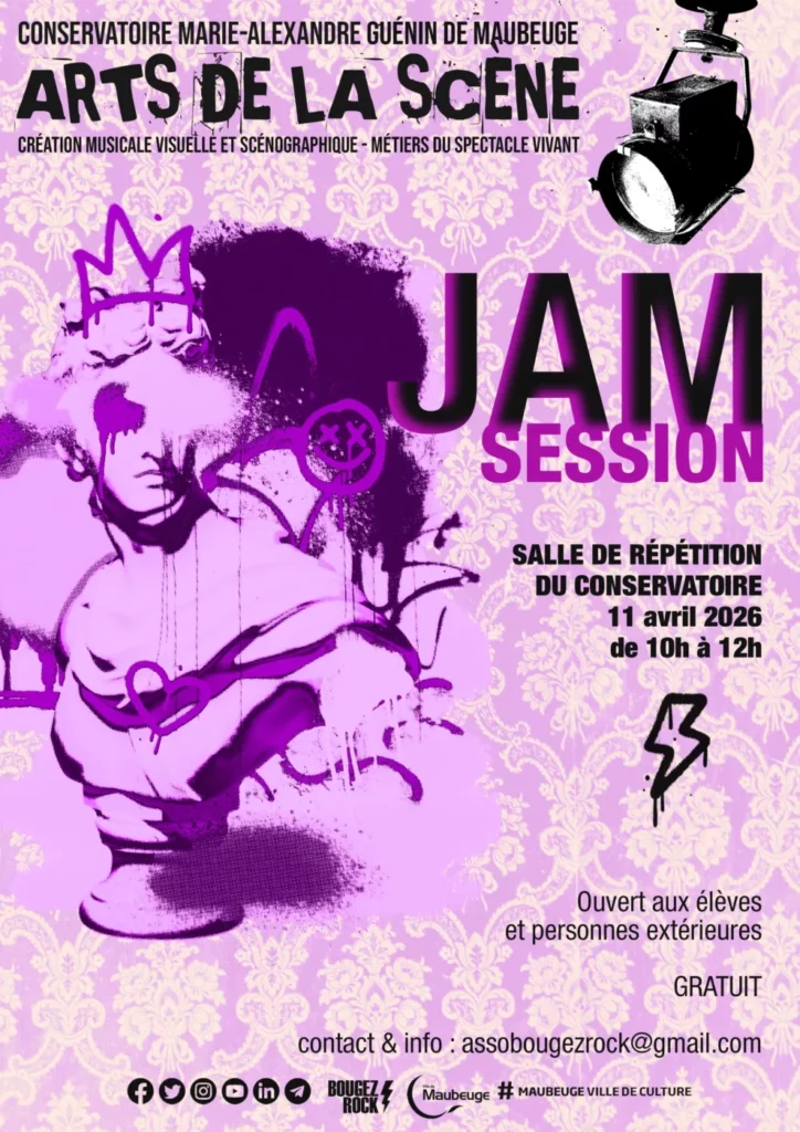 Bougez Rock en partenariat avec le conservatoire de Maubeuge organise « JAM SESSION » de 10h à 12h dans la salle de répétition du conservatoire de Maubeuge