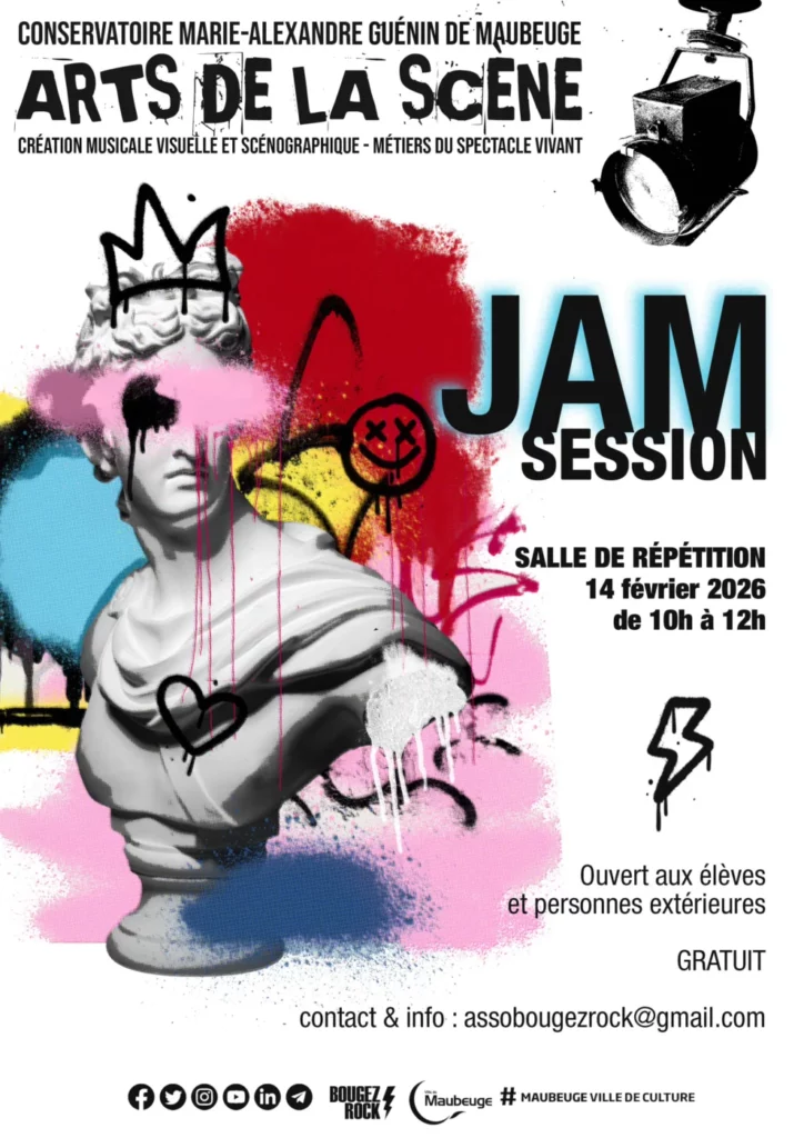 Bougez Rock en partenariat avec le conservatoire de Maubeuge organise « JAM SESSION » de 10h à 12h dans la salle de répétition du conservatoire de Maubeuge