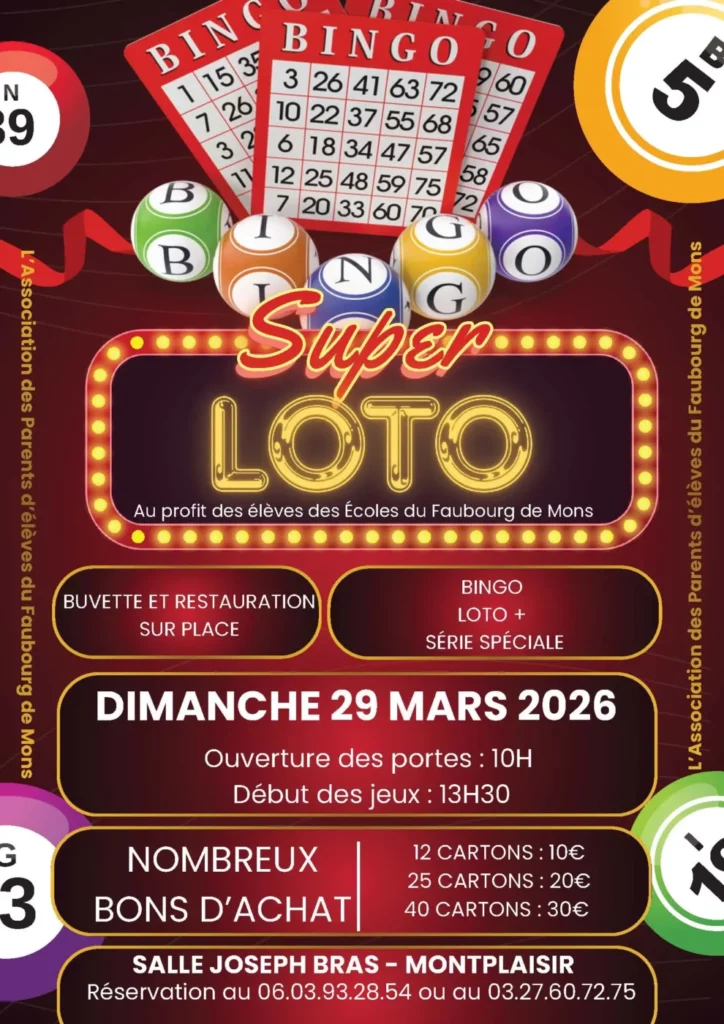 L’APE Faubourg de Mons organise un loto à la salle Joseph Bras