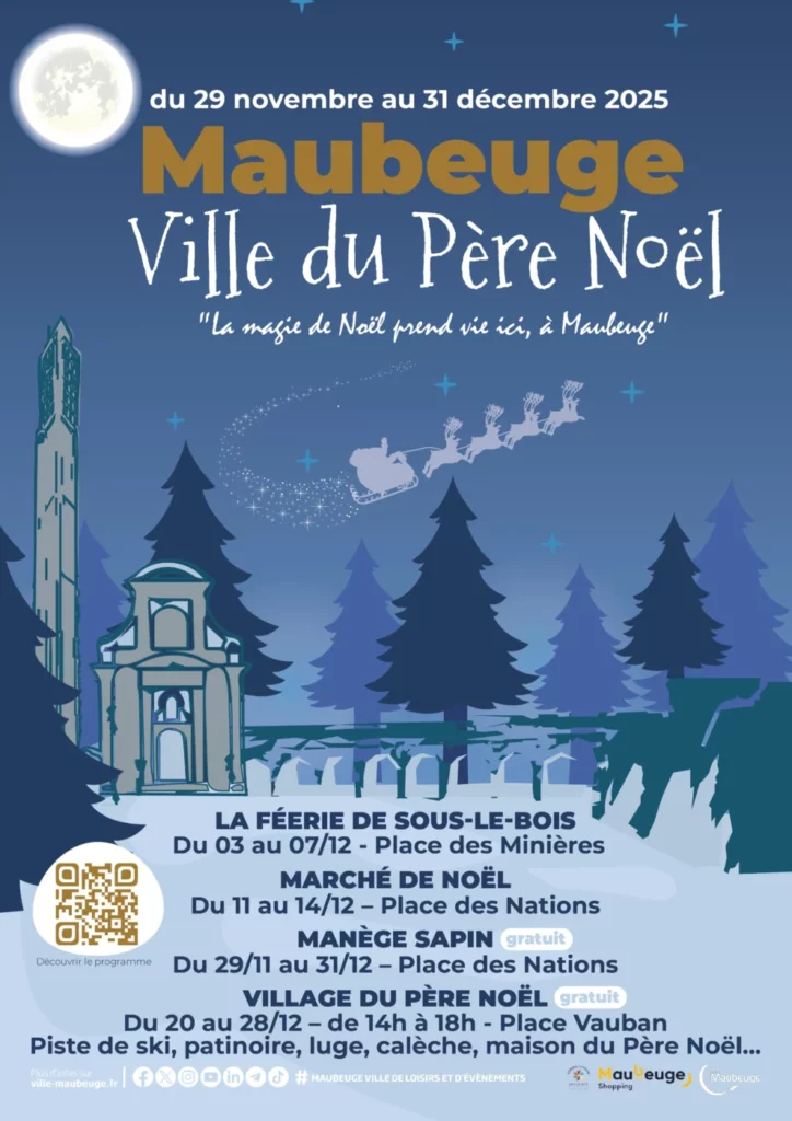 Du 29 novembre au 31 décembre, la magie de Noël s’installe dans toute la ville ! Illuminations, animations pour petits et grands, marché de Noël, village enchanté, manège sapin… Venez vivre un mois féerique au cœur de Maubeuge. ✨
