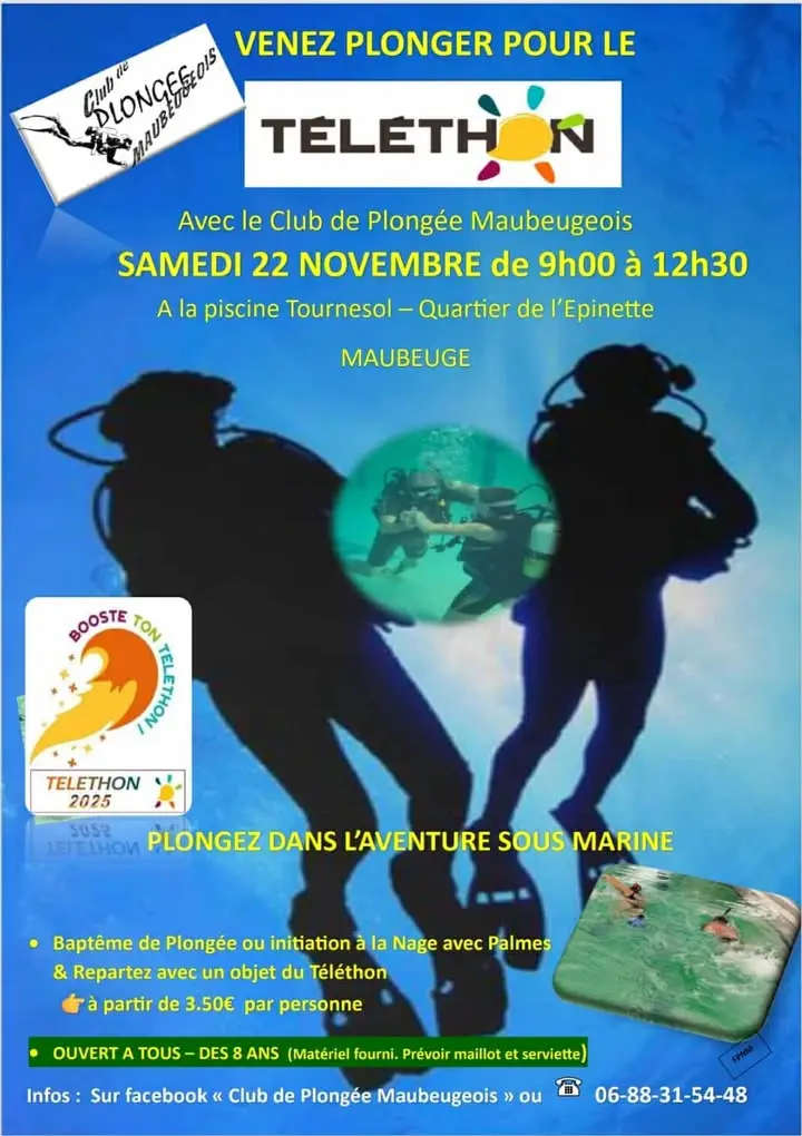 Dans le cadre du Téléthon, le club de plongée maubeugeois organise des portes ouvertes de 9h à 12h30 à la piscine Tournesol