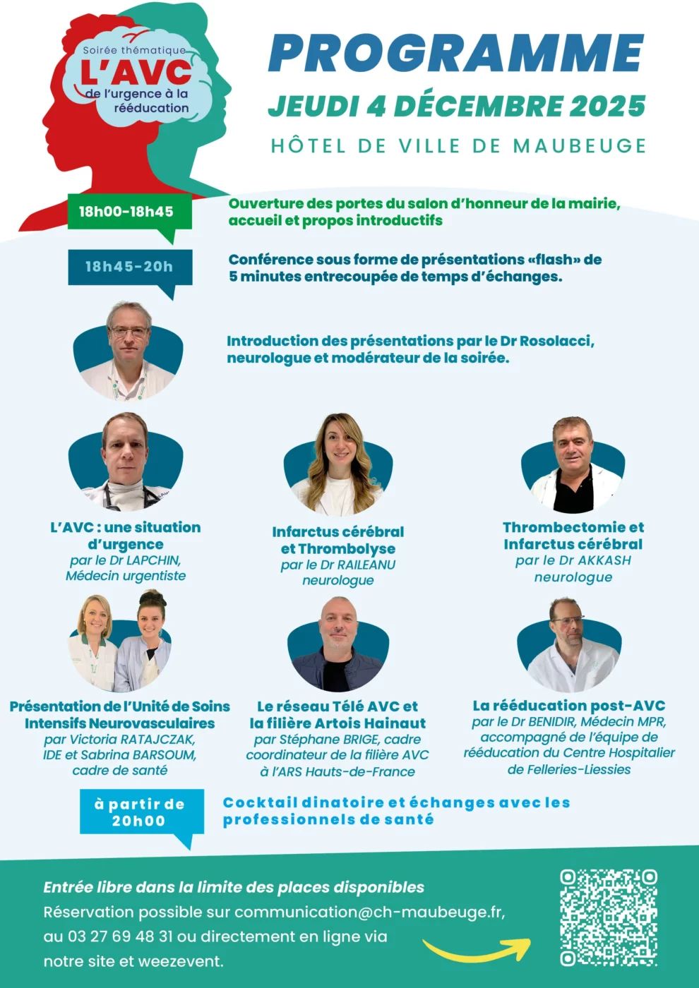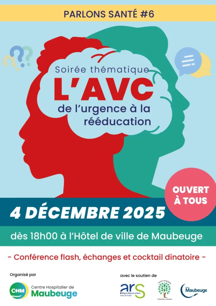 Soirée sur la thématique de l’AVC organisée par le Centre Hospitalier de Maubeuge, en partenariat avec l’ARS, le Centre Hospitalier de Felleries-Liessies et la ville de Maubeuge à partir de 18h dans le salon d’honneur