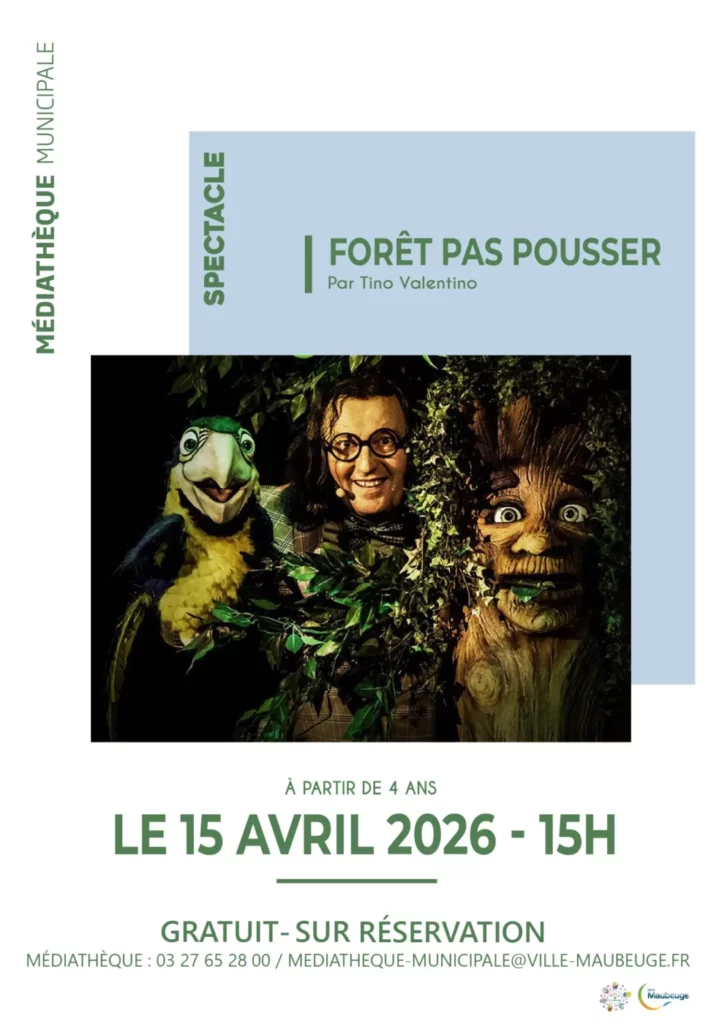 Spectacle « forêt pas pousser » à 15h à la médiathèque.