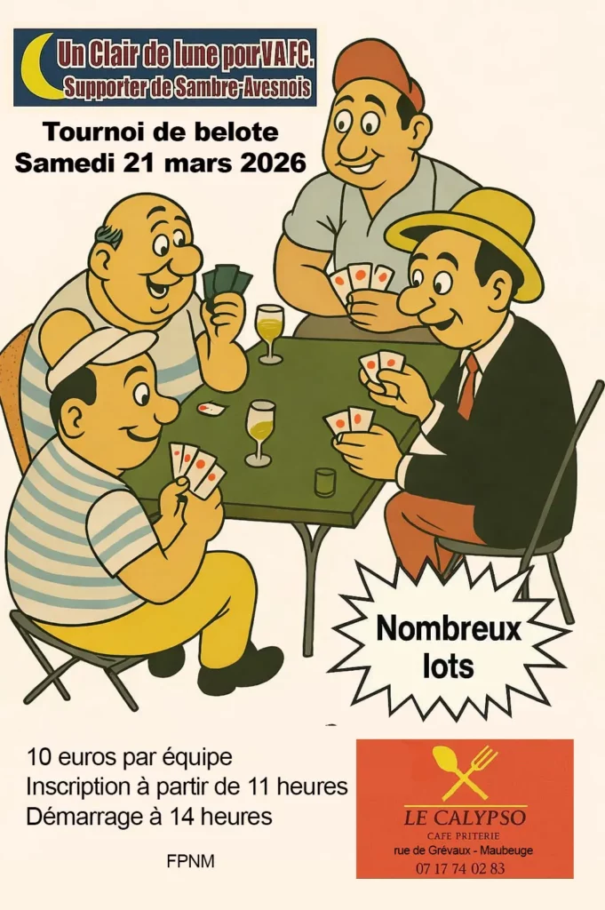 Un clair de lune pour VAFC organise un tournoi de belote au café friterie Le Calypso